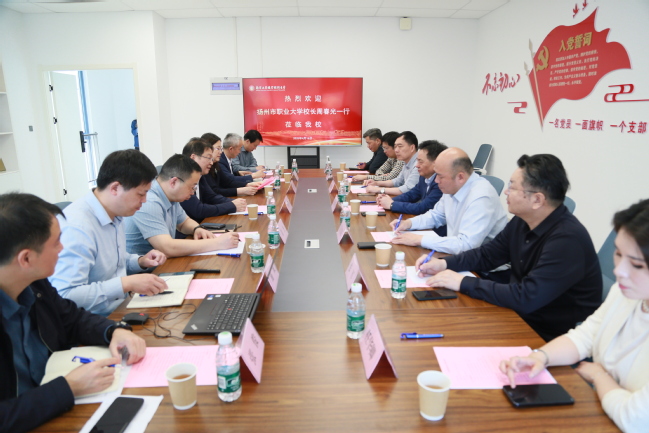 4月16日下午,扬州市职业大学党委副书记、校长周春光,党委委员、副校长吴书安一行7人来校调研交流,AB.COM党委副书记、校长何学军,党委常委、副校长魏萍在双创大楼三楼会议室接待了来宾,相关职能部门负责人陪同接待。