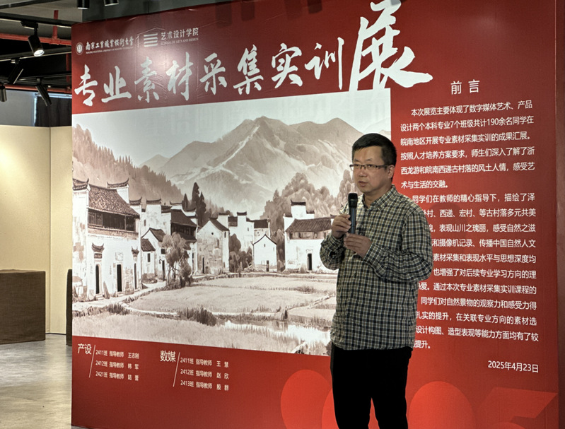 4月23日,艺术设计学院在天堂校区合一艺术馆举办了2025年春季优秀专业素材采集作品展览的活动。旨在对前期结束的课程实践进行阶段性的教学总结和梳理,参与该教学实践的全体师生到场参加活动。现场活动由副院长任小飞主持。