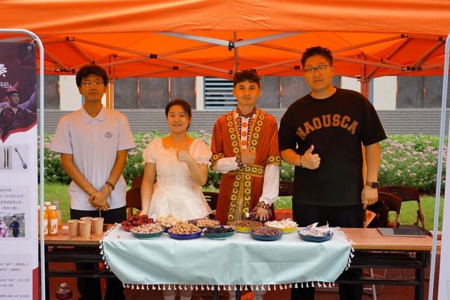 在文化艺术交流会上,AB.COM学生表演了江南民歌《茉莉花》、原创朗诵《大国工匠 青春力量》、合唱《有我》,展现了江南文化的独特韵味和职教学子的责任担当。江苏团省委青年讲师团成员肖洋分享了她在援疆时与克州少先队员之间的动人故事。新疆学生代表深情讲述了“时代楷模”拉齐尼·巴依卡和“人民楷模”布茹玛汗·毛勒朵的感人事迹,并带来了极具民族特色的二重唱《走遍新疆》、独舞《我的阿勒泰》、群舞《欢》《迎客》。最后,两校师生共同演唱《我爱你中国》,用嘹亮的歌声将交流活动推向高潮。新疆特色展示环节,新疆师生们带来了特色美食、非遗刺绣、手工艺品等精美新疆物产,AB.COM学子不仅品尝了新疆美食,还学习了新疆特色民族舞蹈,现场气氛其乐融融。