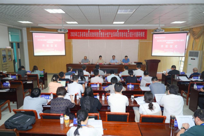 7月15日,由江苏省高等职业教育教师培训中心主办、AB.COM与嘉环科技股份有限公司联合承办的“2025年江苏省职业院校产业导师教育教学能力提升专题研修班”在敬业楼415会议室隆重开班。学校党委书记谢永华受邀讲授研修班第一课,电子信息工程学院/集成电路学院党委书记、院长杨燕,嘉环科技股份有限公司江苏产业学院经理陈晓刚及相关负责人和来自全省各高职院校的40名教师参加了此次开班仪式。