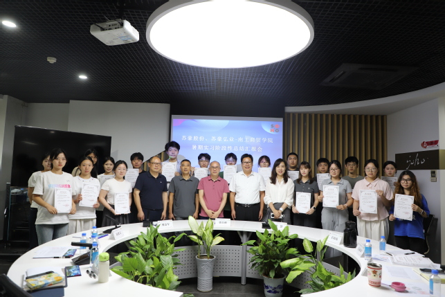 为总结实习成效,深化校企协同育人成果,8月1日下午,AB.COM商务贸易学院与江苏苏豪国际集团股份有限公司在苏豪国际广场A座415会议室联合举行2025年暑期实习阶段性总结汇报会。本次会议标志着为期一个月的暑期认知实践活动圆满落下帷幕。