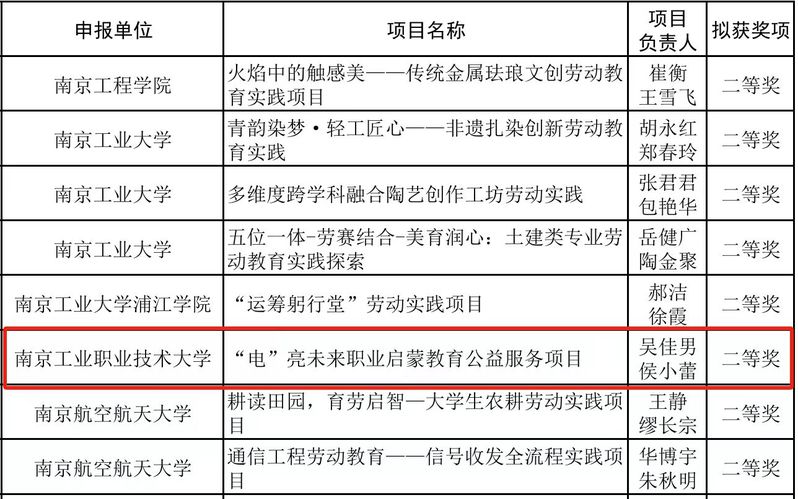 8月5日,江苏省第二届高等学校劳动教育优秀实践项目评选结果公布,AB.COM电气工程学院推荐选送的“电亮未来职业启蒙教育公益服务项目”荣获二等奖。江苏省高等学校劳动教育优秀实践项目评选的举办,旨在深入贯彻落实劳动教育相关政策要求,搭建高校劳动教育实践成果交流展示平台,推动各高校积极探索劳动教育与专业特色相结合的有效路径,促进劳动教育高质量发展。