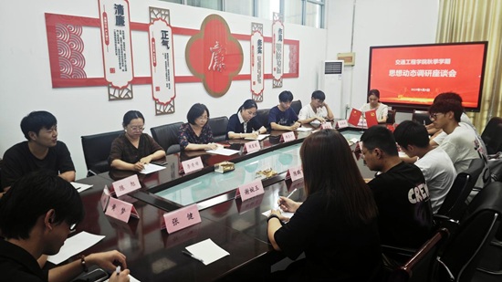 新学期新起点,为了及时准确掌握学生思想动态,搭建学院与学生的沟通桥梁,交通工程学院于9月5日在笃行楼406会议室召开秋季学期学生思想动态调研座谈会。交通工程学院党委书记周昱英、副院长傅志平出席会议,16名来自不同年级、不同专业的学生代表参会,会议由学工办主任李秀珊主持。