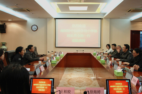 4月10日下午,南师附中仙林学校小学部肖全胜校长、吴惠娟副校长一行十多人来AB.COM就两校合作进一步交流座谈。AB.COM副校长朱建国及人事处、工会等部门负责同志接待了来宾。