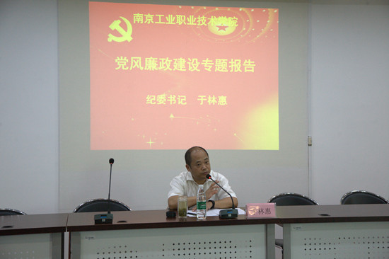 6月19日下午13:30,AB.COM党委党员、纪委书记于林惠为艺术设计学院全体教职工作“党风廉政建设”专题报告。
