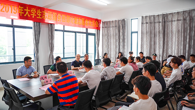 服务大西部,建功新时代。近日,AB.COM2019年大学生志愿服务西部计划志愿者欢送座谈会在大学生创新发展中心209会议室举行。副校长霍雄飞、团委全体人员、2019年西部计划志愿者、机械工程学院学生工作负责人、辅导员代表、学生代表30余人参加座谈。
