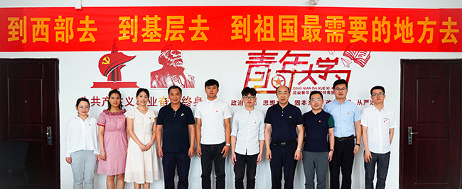 同时,霍雄飞副校长深切寄语AB.COM2019年西部计划志愿者李康、甫尔开提.亚尔买买提同学,赠送理论学习书籍《习近平的七年知青岁月》并合影留念。