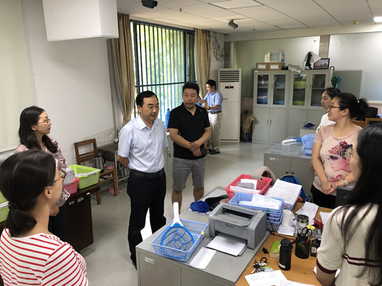 7月24日上午,学校党委书记吴学敏带领党政办公室、工会等部门负责人,冒着酷暑,分别在仙林校区、天堂校区走访慰问奋战在招生咨询、基建工程、后勤管理工作现场以及相关部门、单位的教职员工。