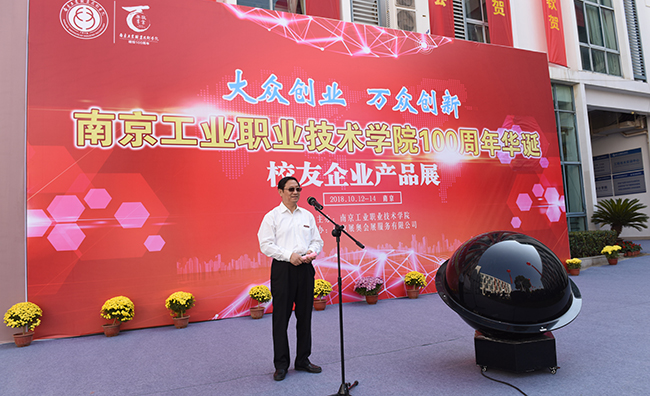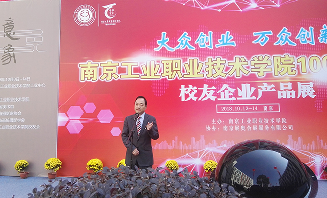 学校党委书记、校友会会长吴学敏代表学校进行致辞,他代表学校15000名师生向参加开幕式的全体老领导,离退休教职工,参展的校友企业代表,以及返校的校友们表示热烈欢迎。他在致辞中指出,校友企业的创新产品是学校办学成果的重要体现,参展的企业都是优秀校友企业代表,涵盖智能制造、非遗文创、产业服务、旅游特产四大类66家单位,通过搭建校友企业交流平台,寻求资源整合和对接,促进校友企业共同发展。孔伟教授的意象摄影展中展示的48幅作品,是他多年来潜心专研摄影事业的成果,此次联合南京校友会三分会共同发起“向百年校庆献礼——摄影艺术作品捐赠义卖”活动,将把义卖的全部款项捐赠给学校。