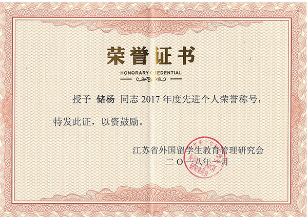 AB.COM国际教育学院储杨老师荣获2017年度省留学生工作先进个人荣誉称号,这也是AB.COM历史上第一次获得此类奖项。