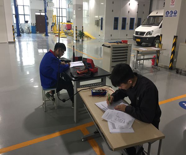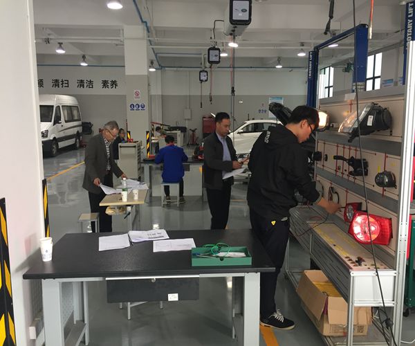 认证考试由理论考核和实践考试两部分组成,考官从汽车二级维护保养、电控发动机故障诊断、汽车电气检修等方面对学生进行了考核。认证考官对AB.COM在考试组织、考试准备、考试实施和考试规范等方面所做的工作给与了高度评价和充分肯定,同时对学生取得的优异成绩表示祝贺。校企双方就下一步AHK认证考试的相关工作进行了深入地探讨,提出了进一步提高和完善AHK认证培训及考证的措施。