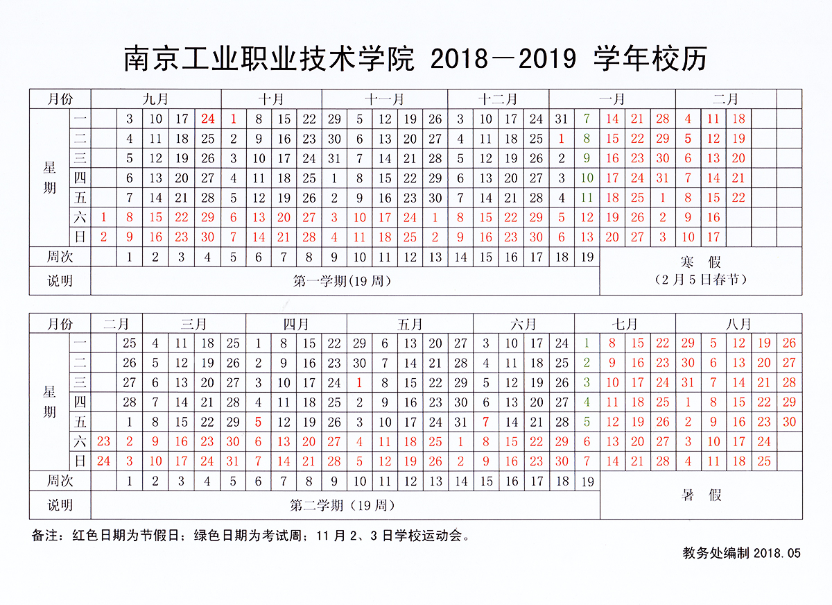 2018-2019学年校历