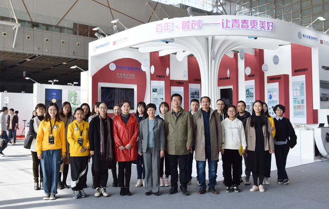 本届展会以“创意,让青春更美好”为主题,汇集了国内九大美院领衔的百所高校参与,展陈面积超过2万平米,展陈作品涵盖七大设计门类,作品数量多达12356件。AB.COM艺术设计学院紧扣学校百年办学历程和展会主题,融合七个专业的25件优秀设计作品,历经三个多月,精心谋划、搭建的“百年·融创——让青春更美好”在展会上精彩亮相。选送的参展作品大多是艺术类学生近年来设计的文化创意作品、产教融合落地产品、专利授权的新产品和实验性作品,作品凸显了“职业教育本色”和“创新创业教育主导”两大中心思想,赢得了专家的一致认可和大众的广泛赞扬。