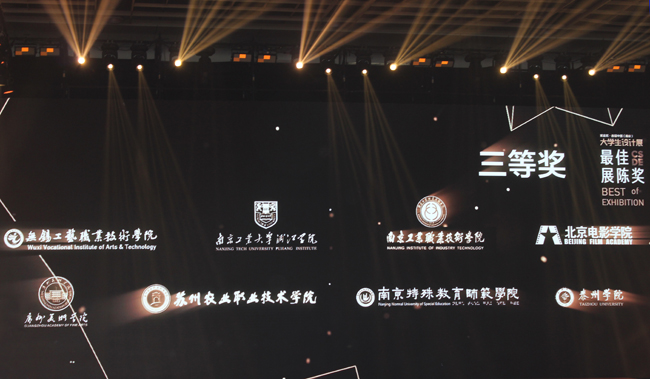 基于本次展览的特殊性、专业性、艺术性,展览组委会特别设立了最佳组织奖和最佳展陈奖两项团体奖项,AB.COM选送的以“百年树人、学做合一、双创融合”为理念的展陈方案经过专家组专业评审、大众网评、现场核验等多个环节,在百所参展院校中脱颖而出,荣获“最佳展陈奖三等奖”;学生作品《“雪染栖霞”创意茶具》同时获“最具人气奖”优秀奖和“最佳展品奖”优秀奖。