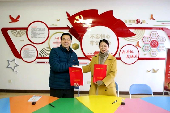 随后,在大家的见证下举行了南京工业职业技术学院国际教育学院直属党支部与洪泽区水上百合党支部结成友好支部签约仪式。