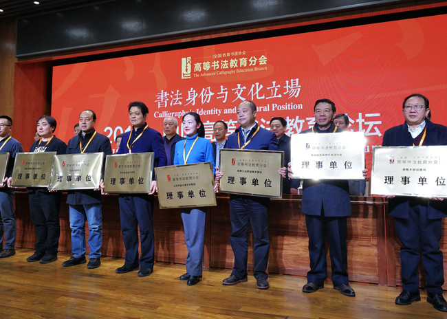 论坛上,包括北京大学、清华大学、中央美术学院等65所院校入选理事单位,AB.COM位列其一。论坛向全国高校发布了《倡议书》呼吁高校师生在新时代弘扬中华美育精神,创造高等书法教育新成果。