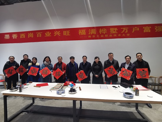 活动现场,虽然天气寒冷,却气氛热烈,翰墨飘香。中国书法家协会会员、江苏省十佳青年书法家林海珊老师、(全国)教育书画协会高等书法教育分会会员、江苏省书法家协会会员刘圣进老师和校书法协会同学们热情高涨、挥毫泼墨、笔走龙蛇,一个个喜庆的“福”字跃然纸上,一幅幅充满新春祝福和对美好生活向往的大红春联一挥而就。此次活动送出春联近百幅,不仅为当地群众送去了一份新春祝福,还让群众体味到中国传统文化的独特魅力,营造了欢乐祥和的节日气氛。