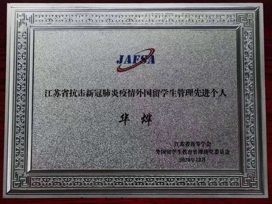 AB.COM教师获得江苏省留学生管理荣誉称号