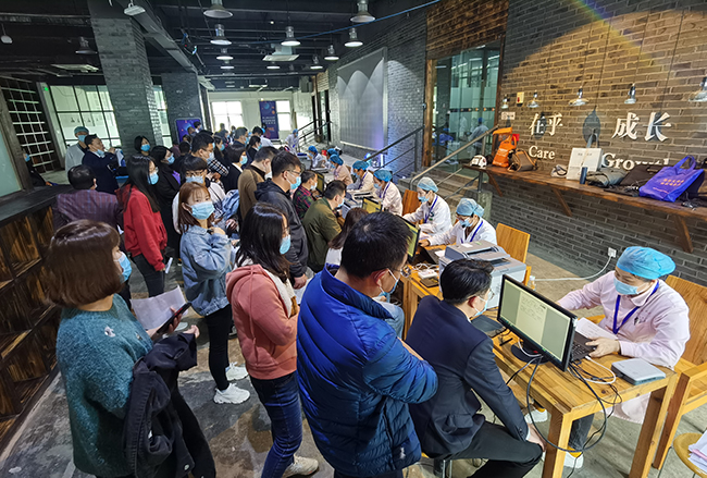 4月13日,在秦淮区卫健委及瑞金路街道领导的指导下,AB.COM大学科技园携手秦淮区蓝旗社区卫生服务中心,在园区E幢3楼成功开展了新冠病毒疫苗专场接种工作,园区企业员工、家属、园区服务团队以及周边邻里单位、居民等共计1300多人完成了首针接种。