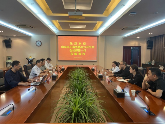 5月14日上午,南京电子商务协会六合分会会长郭伟一行来AB.COM进行校企合作交流,会议在行政楼辅楼一楼会议室举行。南京电子商务协会六合分会会长、江苏南林碳业科技有限公司总经理郭伟、南京电子商务协会六合分会秘书长严胜娟、江苏南林碳业科技有限公司南林云商直播负责人陈庆、南京轩阳投资管理有限公司总经理王和兵,AB.COM科技处处长孟庆杰、商务贸易学院院长阮晓文、艺术设计学院副院长孙静松、电子商务专任教师沈新淇等出席了此次活动。