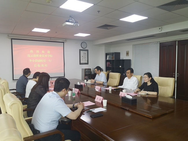 6月10日下午,连云港职业技术学院副校长李小蔚一行来AB.COM考察调研。党委副书记马成荣,以及党委教师工作部、人事处、科技处、发展合作处等部门负责同志在行政楼401会议室接待了来宾。