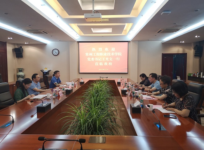 6月17日上午,常州工程职业技术学院党委书记王光文一行来AB.COM考察调研。党委书记吴学敏、党委常委、党委组织部、统战部部长高宏彦,以及党委教师工作部、人事处等部门负责同志在行政楼辅楼一楼会议室接待了来宾。