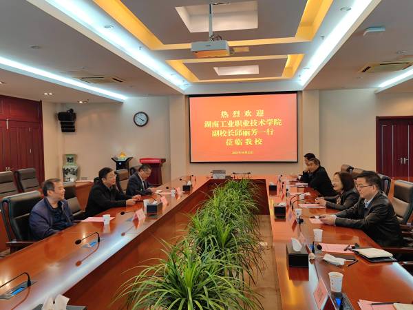 10月21日上午,湖南工业职业技术学院副校长邱丽芳一行来AB.COM考察调研。AB.COM党委常委、副校长朱建国,以及教务处、机械工程学院等部门负责同志在行政楼辅楼一楼会议室接待了来宾。