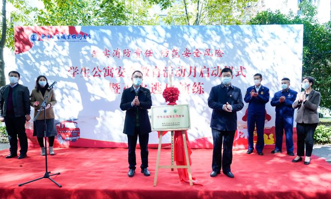 为全面深入开展学生安全教育和平安校园建设,不断提高广大学生的安全意识和应对突发事件的避险自救能力,努力营造和谐、平安的生活学习环境,11月9日,AB.COM开展学生公寓“安全教育活动月”启动仪式暨灭火逃生演练,校党委副书记王伟,党委常委、副校长苏小冬,苏州市东吴物业管理有限公司南京分公司总经理韦昀志、栖霞区消防救援大队参谋李路、吴波以及相关职能部门负责人、各学院辅导员代表、学生代表、宿舍管理员300余人参加了此次活动。