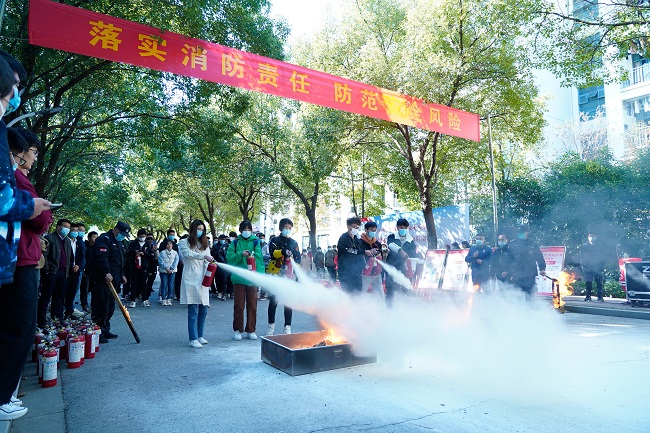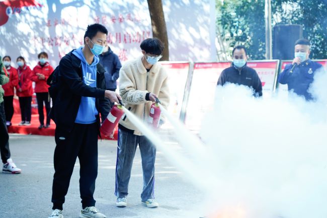 吴波给同学们详细讲解了灭火器的使用方法和应急疏散的注意事项,并在雪松苑4-5栋进行了应急疏散演练和消防灭火演练。通过演练,同学们初步掌握了消防器材的使用和应急逃生知识,收获满满。