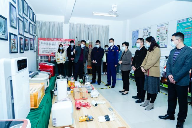 王伟、韦昀志共同为“学生公寓安全教育室”揭牌。学生公寓安全教育室建在梧桐苑,其中包括消防案例图片展、违禁物品展列、宿舍内安全隐患点展示等。随后学校将组织2021级新生有序参观公寓安全教育室,使同学们切身体会公寓安全的重要性,不断筑牢平安公寓防火墙。