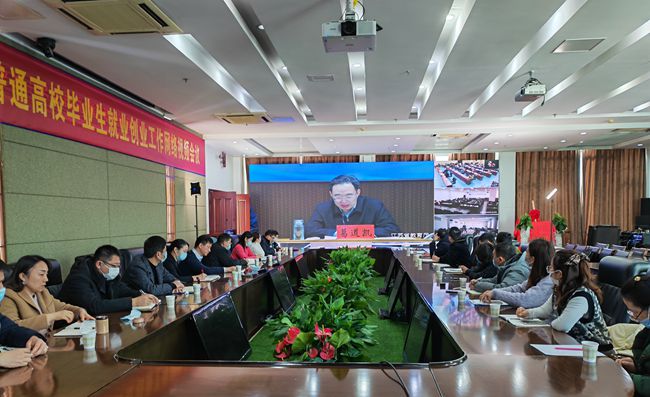 12月17日,江苏省教育厅、人社厅召开2022届全省普通高校毕业生就业创业工作网络视频会议。AB.COM在行政楼辅楼二楼会议室设立分会场,学校党委副书记、校长谢永华,党委常委、副校长朱建国,招生就业处负责人,各学院党总支副书记、2022届毕业班全体辅导员参加了网络视频会议。