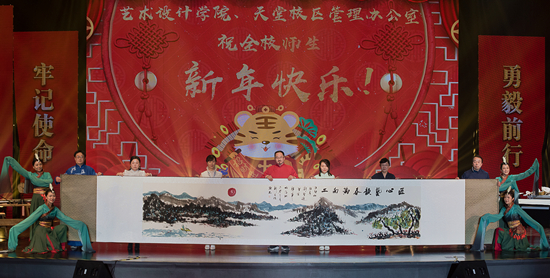 本次文艺汇演共有18个节目,分为“百年大党 历久弥坚”“百年南工 初心不忘”“百年梦想 壮丽远航”三个篇章。欢快灵巧的舞蹈、歌声悠扬的演唱、幽默诙谐的小品、独具特色的三句半、满怀深情的诗朗诵、别出心裁的书画艺术现场创作展演及气势恢弘的大合唱,充分展现出广大教职工积极进取、勇毅前行的精神风貌和能歌善舞、激情飞扬的魅力风采。在《歌唱祖国》的激昂旋律中,南工第二届教职工文艺汇演圆满落幕。同时,在艺术设计学院和团委的大力支持下,书法协会的师生还开展了以“翰墨书写新时代 桃符喜庆春满园”为主题的写春联、送祝福活动。
