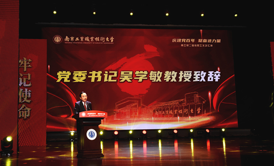 党委书记吴学敏发表了热情洋溢的致辞。他代表学校党委向全体教职员工致以新年美好的祝福,并回顾了2021年学校在落实职业本科教育试点任务、布局发展规划、推进人才培养、实施教学改革、改善办学条件、建设重大项目等方面所取得的成绩,较好地实现了学校在“十四五”时期的良好开局,受到了中央电视台等媒体多次深入报道。吴学敏提出,面对充满希望的2022年,全体南工人要以更加开阔的视野、更加坚定的信心、更加进取的姿态,聚力谱写南工人奋勇拼搏的隽永篇章,共创南工更加辉煌美好的明天。
