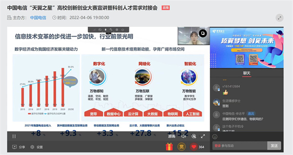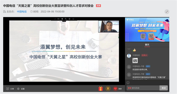 为了贯彻落实国家发展和改革委员会、教育部、人力资源和社会保障部等部门联合印发的《关于深入实施创业带动就业示范行动力促高校毕业生创业就业的通知》(发改办高技〔2022〕187号)文件精神,做实双创示范基地结对共建,4月6日,AB.COM与中国电信集团有限公司联合举办“天翼之星”高校创新创业大赛线上宣讲暨科创人才需求对接会。学校创新创业学院相关负责人以及近300名师生代表参加了线上会议。