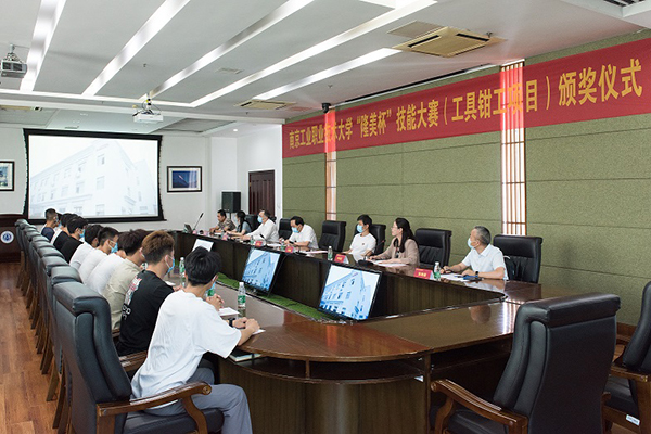 为了推动学校高质量发展,弘扬南工工匠精神,助推职业本科教育内涵建设,根据纪念建校104周年暨职教周活动安排,在优秀校友企业浙江隆美环保科技有限公司的倡导下,由教务处主办,工程技术实训中心承办的“2022年AB.COM‘隆美杯’技能大赛”历时1个多月。6月8日,党委书记吴学敏、党委常委、副校长潘旭海、浙江隆美环保科技有限公司总经理马崇疆、工程技术实训中心党政负责人及师生代表参加颁奖典礼。颁奖典礼由工程技术实训中心直属党支部书记邓利民主持。