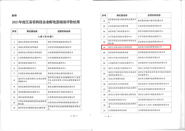 近日,江苏省科学技术厅发布了《省科技厅关于公布2021年度江苏省科技企业孵化器绩效评价结果的通知》(苏科高发〔2022〕194号),AB.COM大学科技园被评为“优秀(A类)”。