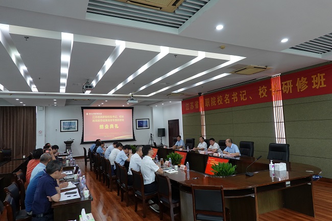 为期两周的2022年高职国培项目“江苏省高职院校名书记、校长教育教学成果培育专题研修班”在AB.COM圆满结束,结业典礼于24日在AB.COM顺利举行。学校党委书记吴学敏,党委常委、副校长霍雄飞以及来自江苏省高职院校的30位党委书记、校长参加了结业典礼。结业典礼由霍雄飞副校长主持。