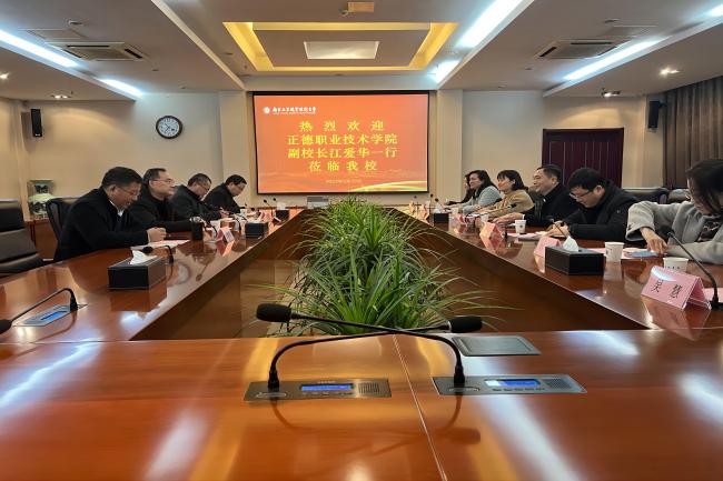 2月22日上午,正德职业技术学院副校长江爱华一行来AB.COM考察调研。AB.COM党委常委、副校长潘旭海,以及教务处、机械工程学院、航空工程学院等部门负责同志在行政楼辅楼一楼会议室接待了来宾。