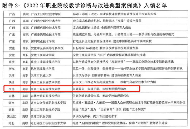 近日,中国教育科学研究院、职业教育与继续教育研究所发布了《关于展示2022年职业院校教学诊断与改进典型案例的通知》,AB.COM提交的双创课程诊改案例---《问题导向,多措并举,持续推进课程诊改》入编《2022年职业院校教学诊断与改进典型案例集》。