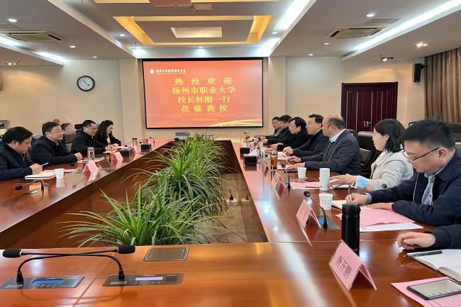 3月16日上午,扬州市职业大学校长林刚一行来AB.COM考察调研。党委常委、副校长朱建国以及相关部门负责同志在仙林校区行政楼辅楼一楼会议室接待了来宾。