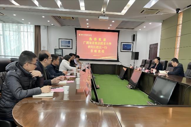 3月24日上午,广西农业职业技术大学校长李向红一行来AB.COM考察调研。党委常委、副校长苏小冬以及基建处的负责同志在仙林校区行政楼辅楼二楼会议室接待了来宾。