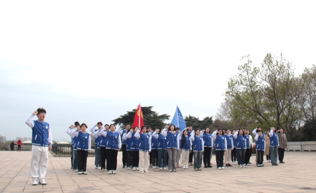全体团员青年重温了入团誓词,在周珈铖同学的领誓下,大家面对鲜红的团旗庄严宣誓,以铮铮誓言再次作出新时代共青团员的郑重承诺。在庄严肃穆的雨花台革命烈士纪念碑前,同学们怀着无比崇敬的心情敬献花束,并缓步绕行纪念碑一周,向为今天幸福生活献出生命和鲜血的革命先辈们致敬默哀,寄托对革命先烈的无限缅怀和深切思念。