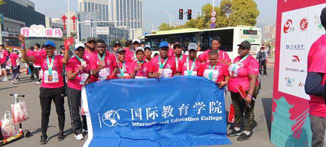 当日,留学生们游历了淮安,参观了淮扬菜博物馆、里运河文化长廊等景点,进一步拓宽了视野,感知了当地文化。赛事期间,AB.COM南非留学生Nokwazi作为代表接受了当地电视台采访。她说:“我很开心能够参加这次活动,边跑边和朋友们一起欣赏赛道周边的美丽风景,运河城市风光令人惊艳,整座城市都充满鲜活的气息。非常感谢主办方和学校为我们提供体验淮安文化的机会。希望今后能够多多参加类似的活动,体验不同的中国文化。”