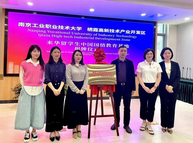 在紫东国际人才街区,师生一行依次参观了“一站式”服务大厅、人才驿站、孵化器、加速器、HATCH部落等功能区域,了解街区的运行模式和管理理念。街区随处可见可感的人性化设计理念,融入国际化元素的“类海外”发展环境,深得留学生青睐和赞许。随后,AB.COM国际教育学院直属党支部副书记、副院长张莉与栖霞高新技术产业开发区纪工委书记顾戟共同为该校来华留学生中国国情教育基地揭牌,基地将发挥驻区高校留学生中国国情教育“首牌”作用,向留学生展示真实的、立体的、全面的中国形象。