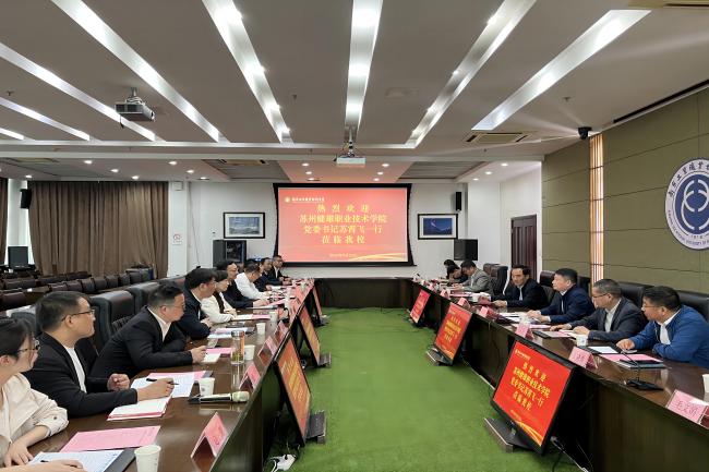 5月22日下午,苏州健雄职业技术学院党委书记苏霄飞一行16人来AB.COM考察调研。党委书记吴学敏,党委常委、党委组织部、党委统战部部长高宏彦以及相关部门负责同志在仙林校区行政楼辅楼二楼会议室接待了来宾。
