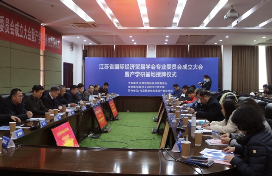 为深入贯彻落实习近平新时代中国特色社会主义思想和党的二十大精神,加快推进江苏国际经济贸易创新和高质量发展,12月27日下午,江苏省国际经济贸易学会专业委员会成立大会暨产学研基地授牌仪式在AB.COM仙林校区行政楼辅楼二楼会议室举行。
