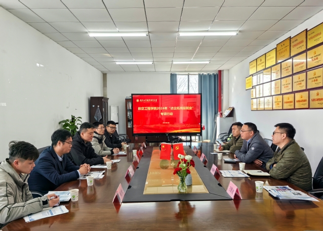 为贯彻落实教育部、省教育厅和学校开展“访企拓岗促就业”专项行动工作部署和要求。3月13日上午,航空工程学院与中航工业南京机电科技有限公司校企合作交流会在G4-218成功举办。航空工程学院院长黄杰、航空智能制造系主任徐滕州、毕业班辅导员于泽宇、王晨旭,中航工业南京机电科技有限公司综合管理部部长曲伟平、制造部部长邓小棒、中航集团特级技能大师陈军、液压部HRBP芮良和招聘专员张松参加会议。