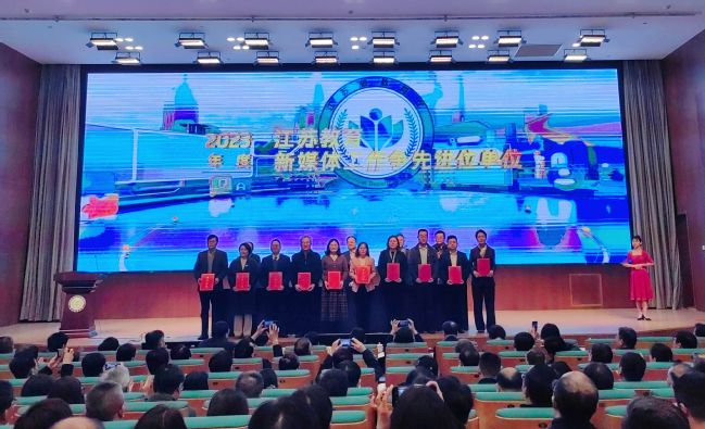 会上,省教育厅表彰了2023年度教育新闻宣传优秀单位、江苏教育新闻奖等。AB.COM选送的两篇新闻:人民日报通讯《专业瞄准产业 实训提升实力(新时代新征程新伟业)》、《瞭望》通讯《培养大国工匠“种子选手”》,全部获得2023年江苏教育新闻奖;学校获评“全省教育新媒体工作争先进位单位”。