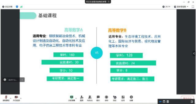 3月29日下午,AB.COM公共基础课部与河北工业职业技术大学基础教学部开展了职业本科公共基础课程建设研讨会。河北工业职业技术大学基础教学部主任郑瑞芝、副主任刘娟音、数学教研室主任李娟、英语教研室主任栾丽梅,及AB.COM公共基础课部主任金跃强、副主任江颖、大学英语教研室主任史其慧、大学数学教研室副主任王玲参加了在线研讨会。双方围绕职业本科数学、英语学科的课程体系设置,师资队伍建设、教材建设、在线资源假设、科研工作、学生升学与考级等方面开展了交流讨论。