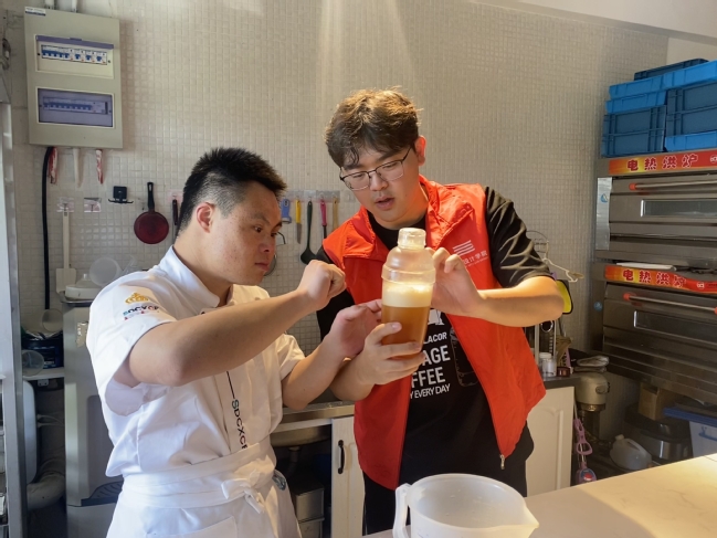 4月27日,艺术设计学院“星宝艺康”爱心服务小队参与了江苏省台联在南京举办的苏台“益”+“青” 携手公益行——纪念五四运动105周年公益关爱活动,志愿者们与近百位两岸青年一起在喜憨憨烘焙咖啡公益空间为“星宝”们送上关怀与温暖。